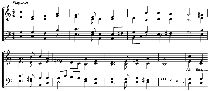 This lovely hymn is really quite difficult to get control of unless you are prepared to be strict with the rhythm. Above I illustrate my playover consisting of parts of the refrain moving straight into the verse with the timings.