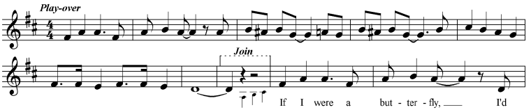 off-beat pick-up at the beginning of each verse; this arrangement makes